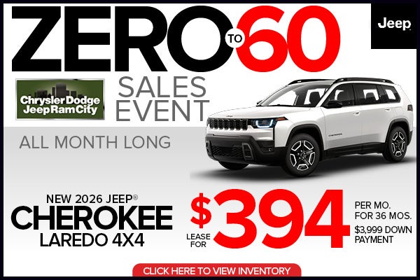 Stock# CNG23695 VIN# 3C4PJMB26TT233969, MSRP $40,220. All offers are valid for well-qualified buyers when financed through Stellantis Financial Services. $3,999 Down Payment, plus, taxes, title, and license (TTL) and first month’s payment due at signing. Total monthly pmts $14,184. At lease end, pay excess wear & use plus $0.30 per mile (for mileage over the original lease allowance of 10,000 miles per year. Offers cannot be combined with any other discounts or incentives. Doc fee of $995 not included. See the dealer for complete details. Offers exp. 04/30/2026.