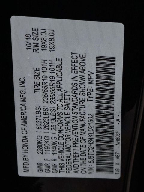 - Tires: 235/55R19 High-Performance All-Season