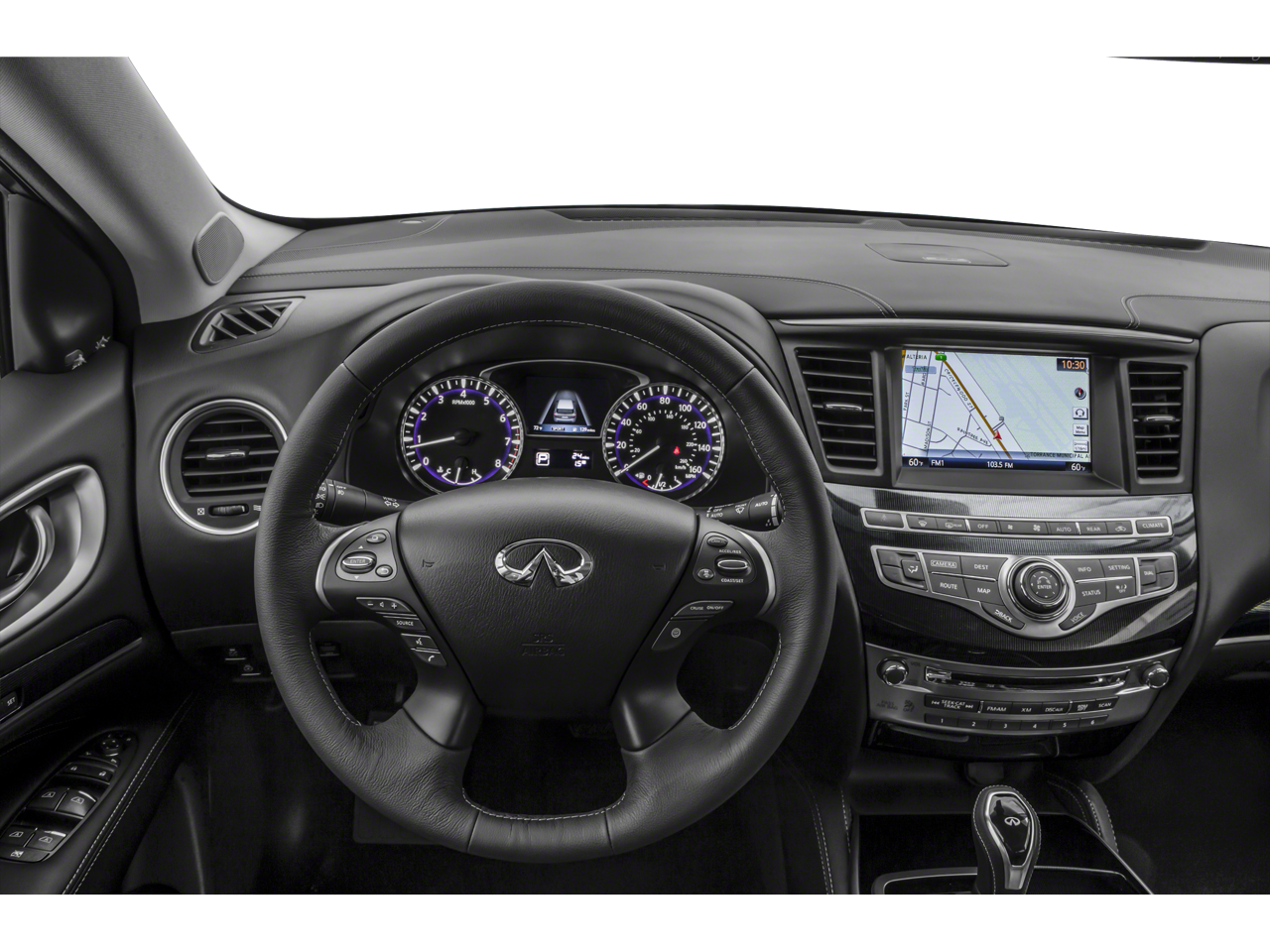 - Radio: AM/FM/CD/MP3 w/Bose Premium Audio System -inc: 13 speakers, Radio Data System (RDS), speed-sensitive volume control, 8" touch screen, illuminated steering wheel-mounted audio controls, INFINITI InTouch system w/HD radio, SiriusXM radio w/3-month complimentary trial, SiriusXM Travel Link w/4-year complimentary trial access to weather, fuel prices, stock prices, sports scores and movie listings, voice recognition for audio, Bluetooth® and vehicle information, Bluetooth® hands-free phone system and audio streaming, hands-free text messaging assistant, 2 USB ports for compatible devices for audio streaming, 6 USB charging ports: 1st and 2nd row, illuminated: 1x type A, 1x type C and 3rd row: 2x type A and auxiliary audio/video input jacks in front center console