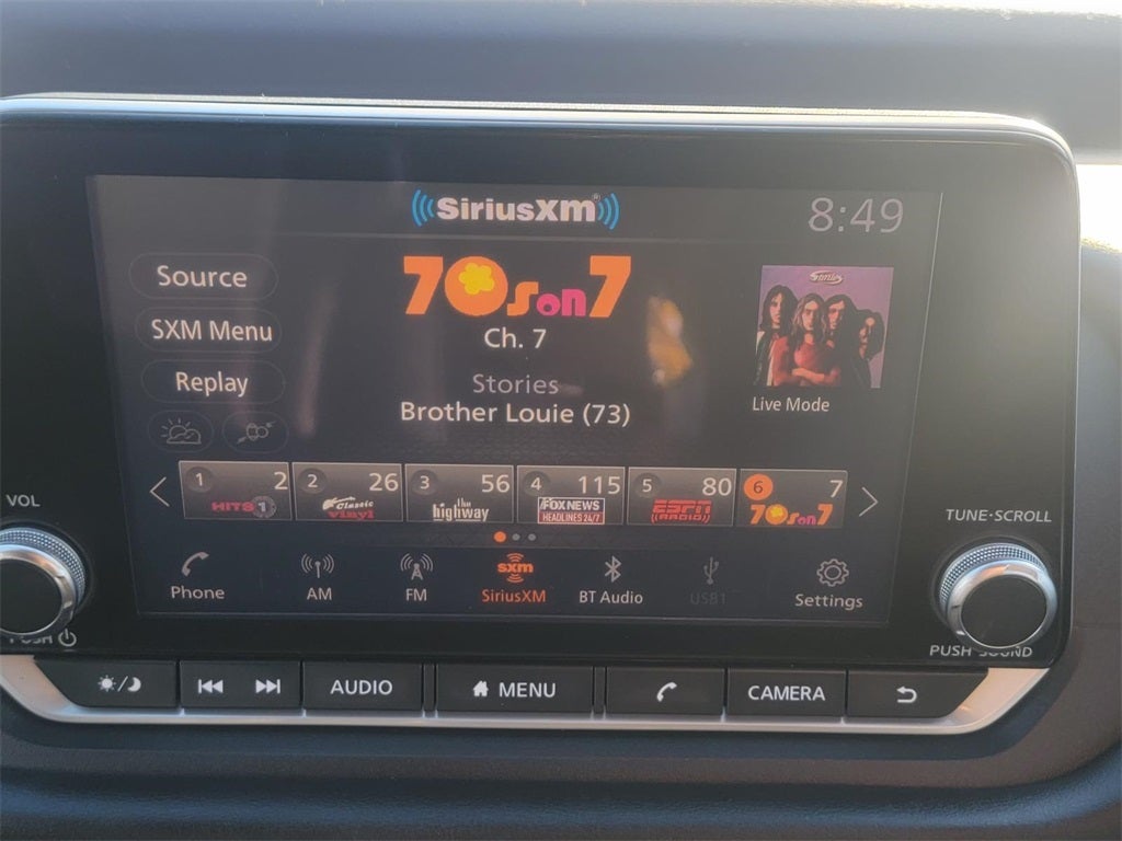 - Radio: AM/FM -inc: 6 speakers, NissanConnect featuring Apple CarPlay and Android Auto, 8" color display w/multi-touch control, SiriusXM satellite radio, 2 illuminated USB connection ports (1 type-A, 1 type-C), Bluetooth® hands-free phone system, streaming audio via Bluetooth®, hands-free text messaging assistant