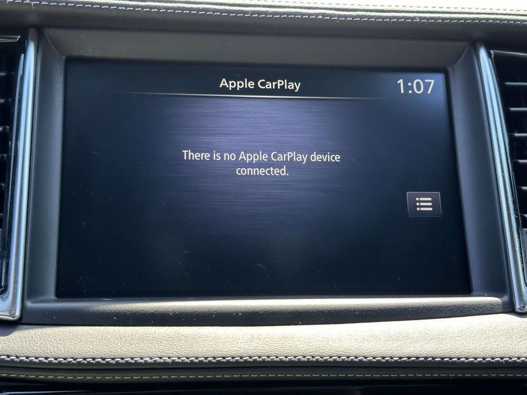 - Radio: AM/FM Audio System -inc: 6 speakers, INFINITI InTouch dual display system w/upper 8" and lower 7" touch screens, wireless Apple CarPlay, Android Auto, HD Radio technology, SiriusXM radio w/advanced audio features and 90-day complimentary trial, INFINITI voice recognition, INFINITI InTouch services, Siri eyes free and Wi-Fi hotspot